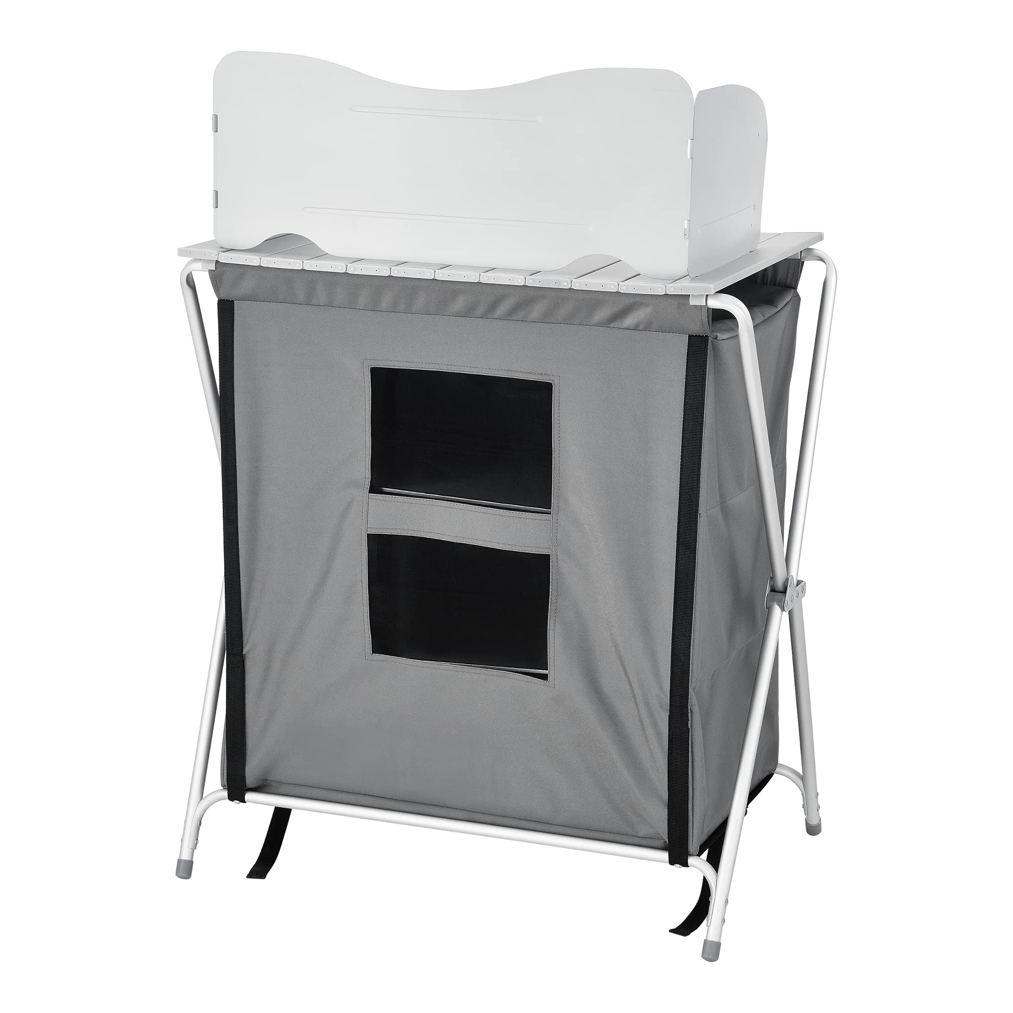 Réductions Cabine De Douche Camping Cuisine De Camping Pliable En Casa - Avec Plan De Travail, Étagères Et Moustiquaire, 110x70x52 Cm, Gris Meuble Pliable Jardin