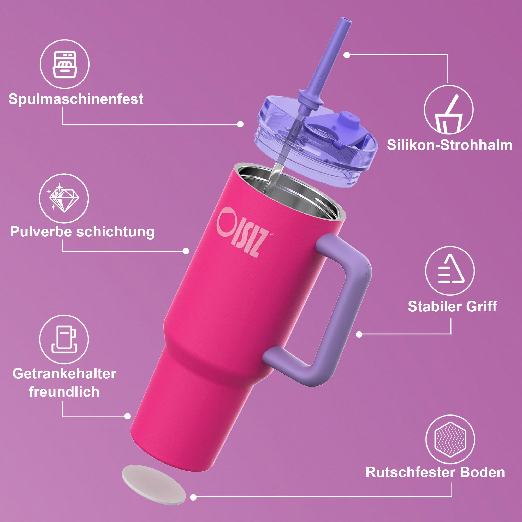 Ce gobelet isotherme de 1200ml (40oz) est ton nouveau meilleur pote pour rester hydraté toute la journée ! En acier inoxydable avec isolation triple paroi, il garde tes boissons froides pendant 32 heures - imagine, ta limonade reste fraîche de matin jusqu'au soir. Le couvercle 2 en 1 permet de boire à la paille (fournie en silicone) ou à petites gorgées, comme tu préfères. La poignée est ergonomique et confortable, et le fond en silicone est antidérapant. Étanche à 100%, donc pas de fuites dans ton sac. En plus, il passe au lave-vaisselle - pratique pour le nettoyage. Parfait pour le bureau, la salle de sport, les voyages ou juste pour traîner à la maison. Disponible en plusieurs couleurs trop stylées. OISIZ offre même une garantie à vie - t'es tranquille ! 🥤