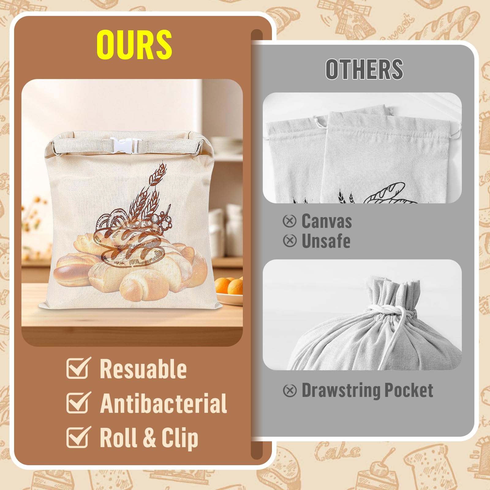 Ces sacs à pain Playexen sont géniaux pour garder ta baguette croustillante plus longtemps ! En tissu avec doublure TPU étanche, ils préservent la fraîcheur sans plastique. Lavables en machine, réutilisables à l'infini. Le format 44x32.5cm convient aux baguettes, pains, mais aussi aux fruits et légumes. Parfaits pour réduire le gaspillage et ranger proprement dans ta cuisine. Un must-have écolo pour les amateurs de bon pain !