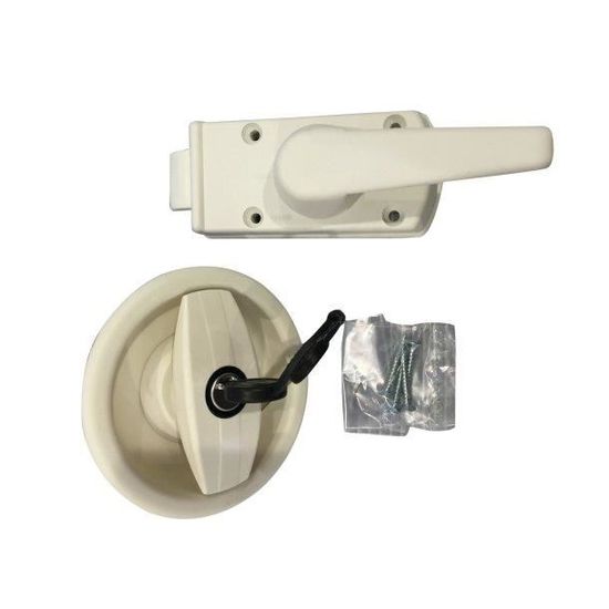 Serrure De Caravane CR-MOESANCO Avec Poignée Blanche - Pour Porte De Camping-Car - Plastique Et Laiton